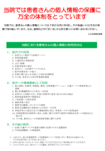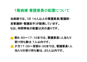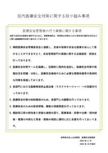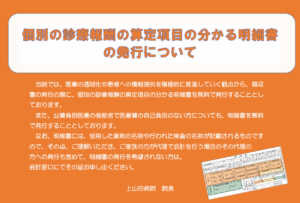2024年度の診療報酬改定を機に、医療法や健康保険法等により、病院内に掲示している書面等を病院ホームページへ掲載することが義務付けられました。なお、掲示物は事前の予告なく更新いたします。あらかじめご了承願います。